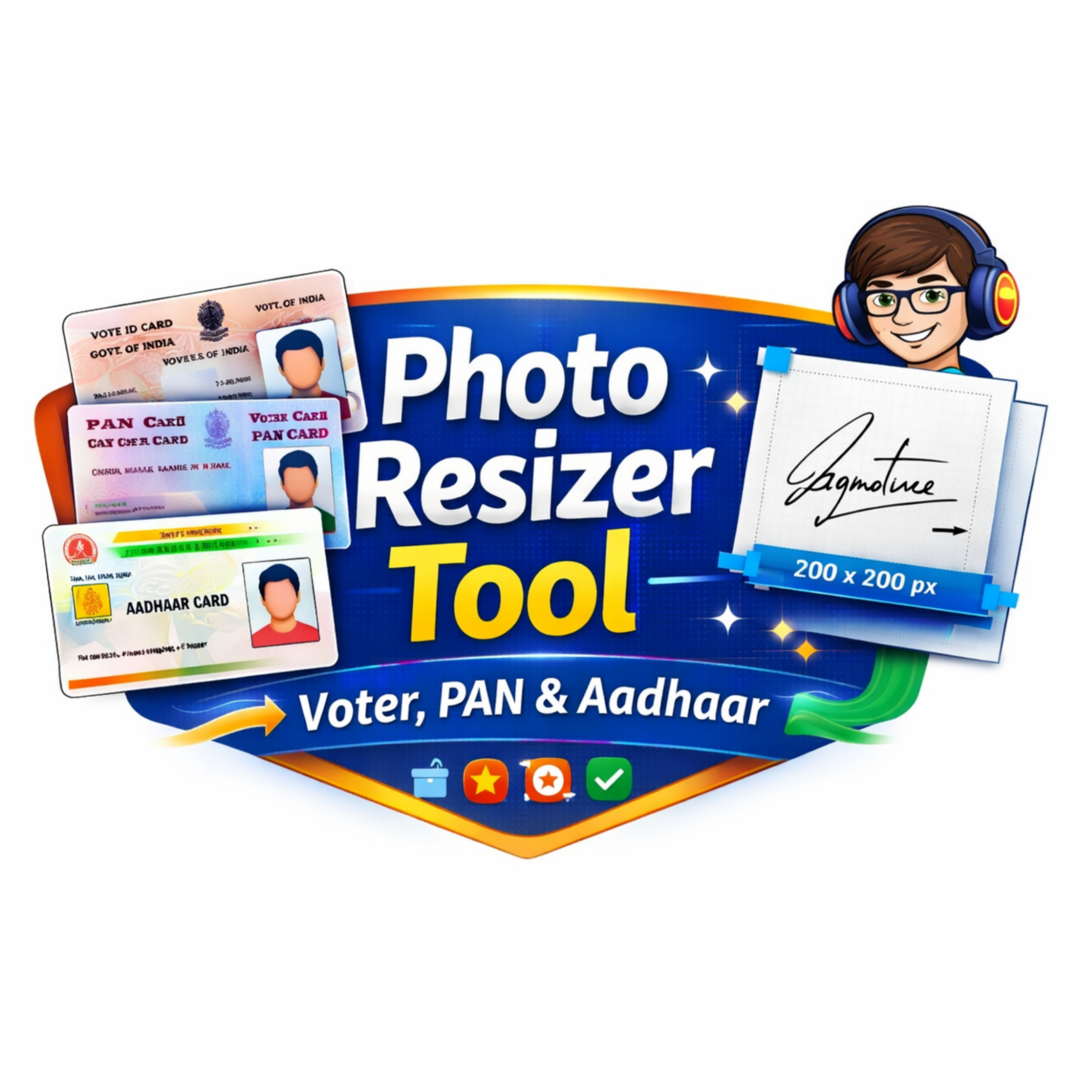 Resize photos for PAN Card, Voter Card, Aadhaar Card + Signature images instantly!